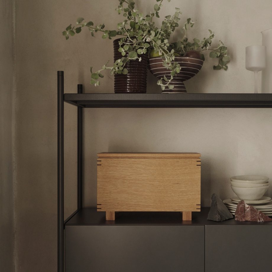 Ontdek de Ferm Living Bon Wood Box, een prachtige en veelzijdige houten opberger die functionaliteit combineert met een tijdloos Scandinavisch design. Gemaakt van FSC™ Mix-gecertificeerd massief eikenhout en eikenfineer, is deze opberger niet alleen een stijlvolle broodbox, maar ook perfect als uienbox, of als elegante opbergoplossing voor keukengerei, kruiden en andere droge ingrediënten.
