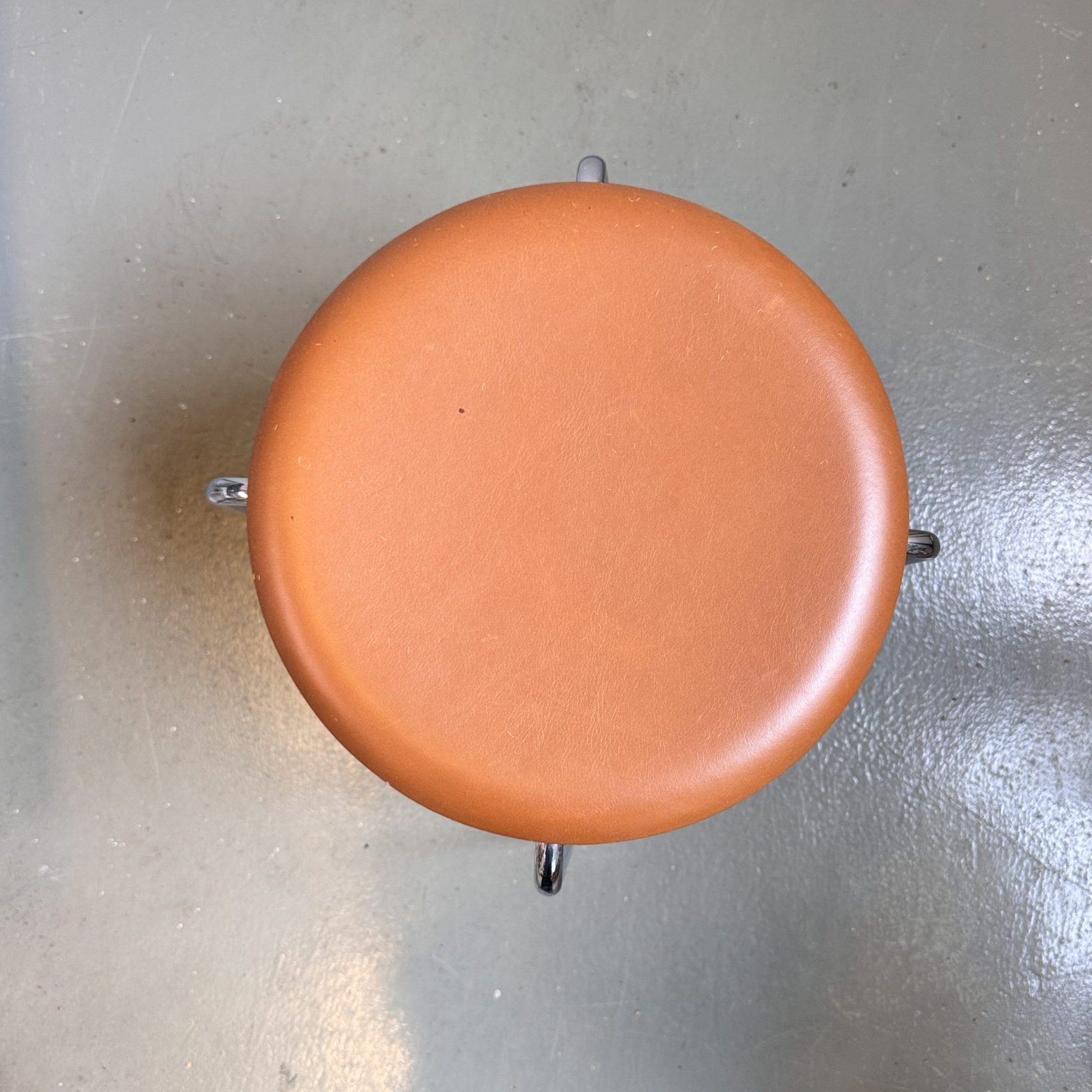 Let op: Dit is een showroommodel met lichte gebruikssporen: De mooie en eenvoudige Dot kruk van Fritz Hansen is ontworpen door Arne Jacobsen in 1954. Gebruik het krukje als (extra) zitplaats thuis of op kantoor. Modern en minimalistisch, maar toch verfijnd. De zitting van de DOT kruk is bekleed met eersteklas leer en het onderstel is van chroom of gepoedercoat metaal (voorzien van vloerbeschermers). Met de Fritz Hansen Dot kruk heb je een moderne klassieker in huis.