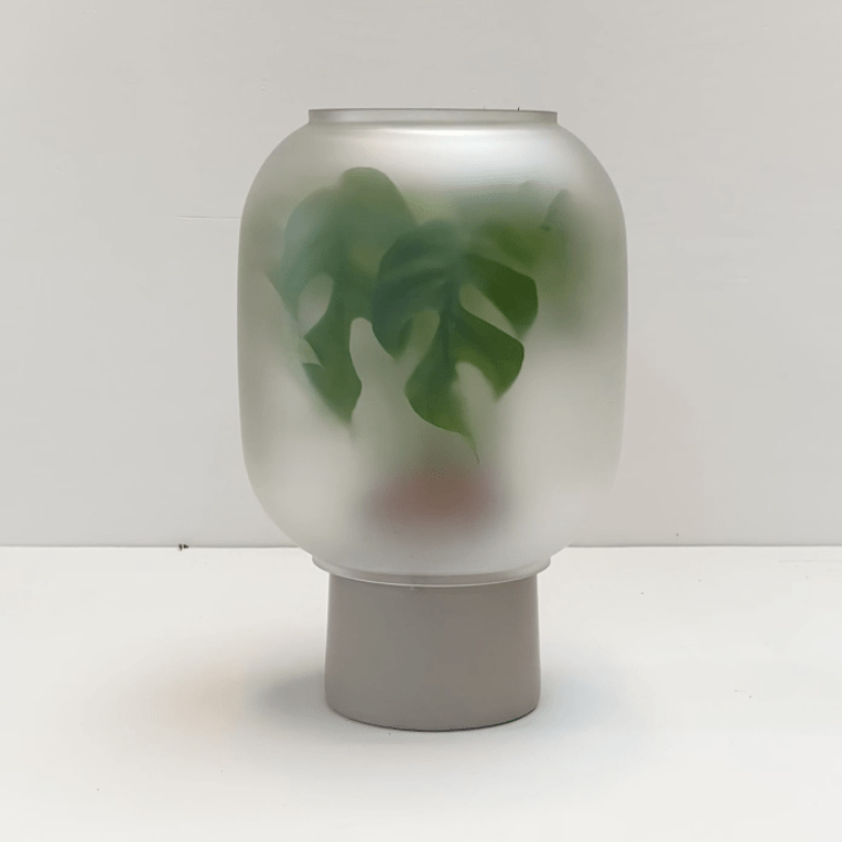 De Nebl bloempot bestaat uit twee delen: een keramische basis waar je de plant in zet en een mat glazen bol die je op de basis plaatst. Het glas heeft twee openingen met verschillende afmetingen, zodat je het glas hoog of laag op de basis kunt zetten. Zo varieer je met het seizoen, je smaak of met de grootte van de plant.