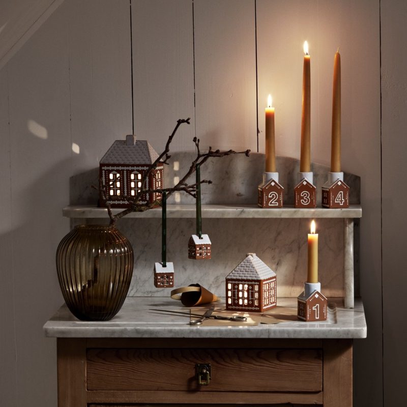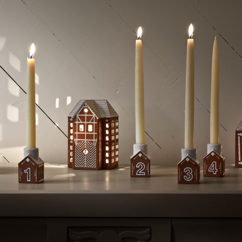 Kähler Gingerbread Adventskandelaars – Set van 4 keramieken huisjes