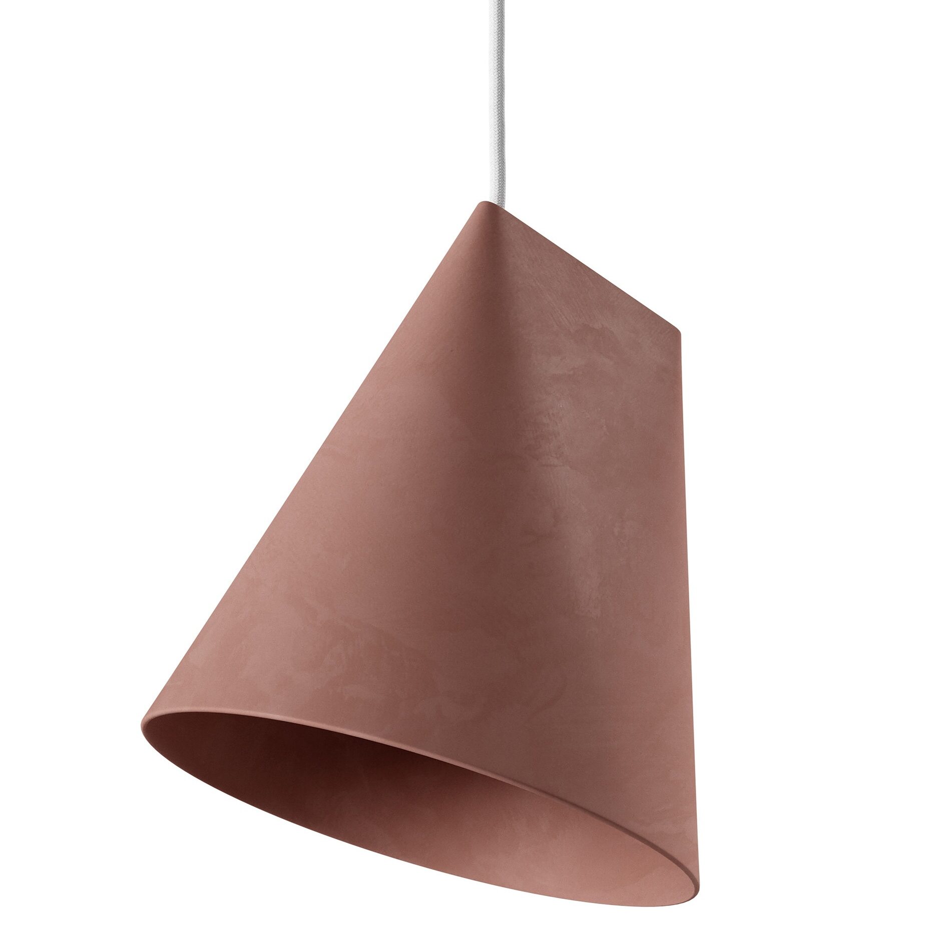 Deze hanglamp is ongeglazuurd, ruw en gebakken op meer dan 1100 graden. Dat zorgt voor een mat oppervlak met een fijne textuur. Het porseleinen kapje is met de hand gemaakt: daarom is elk lampje uniek qua vorm, grootte en kleur.